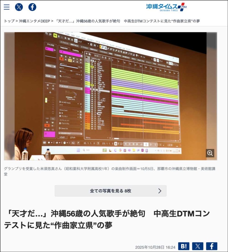 沖縄タイムスさんにDTMオキナワの特集記事が掲載されました こんにちは、DTMオキナワ主宰の安田陽です。 私たちの思いや活動内容、10月5日に開催したワークショップやコンテストについて、沖縄タイムスさんに詳しく紹介していただきました。 ぜひご一読ください。 「天才だ…」沖縄56歳の人気歌手が絶句 中高生DTMコンテストに見た“作曲家立県”の夢 yoyasuda2025-11-26T15:31:04+09:002025年10月28日|お知らせ|